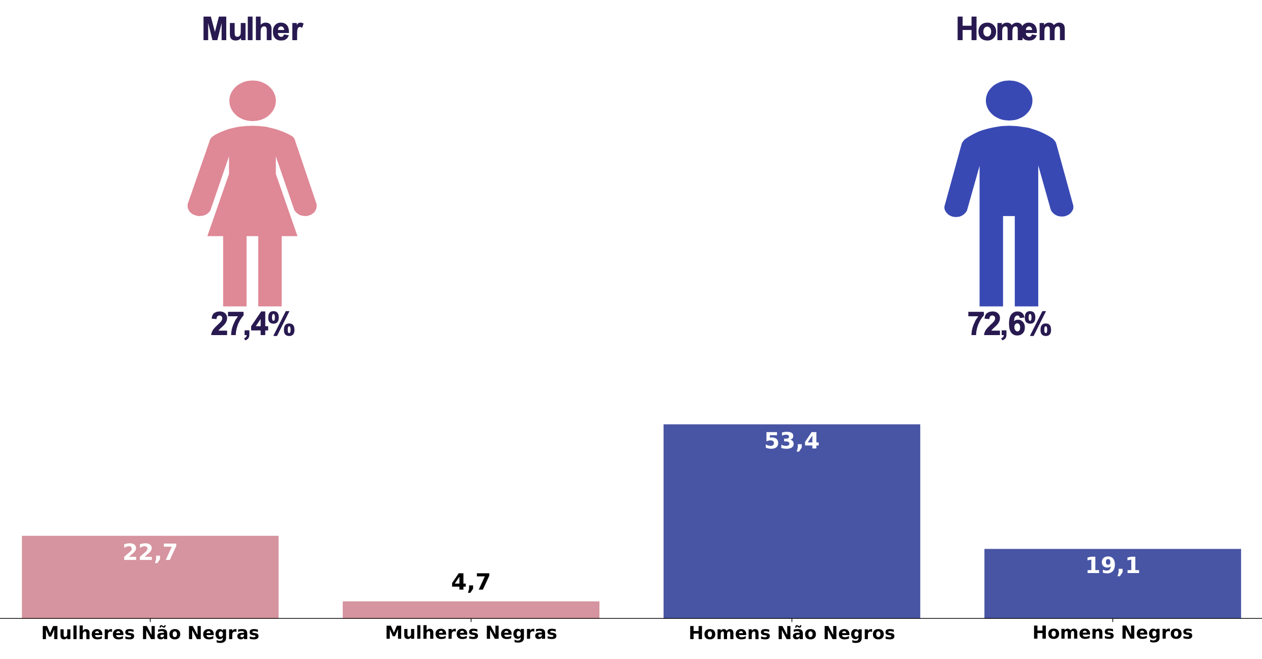 • O salário contratual mediano das mulheres equivale a 100,0% do recebido pelos homens.